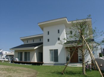 白と片流れの大屋根にこだわった住宅